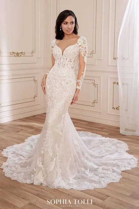 Mermaid Long Sleeves Sheer Lace Wedding Dresses Bridal Gowns 3030232